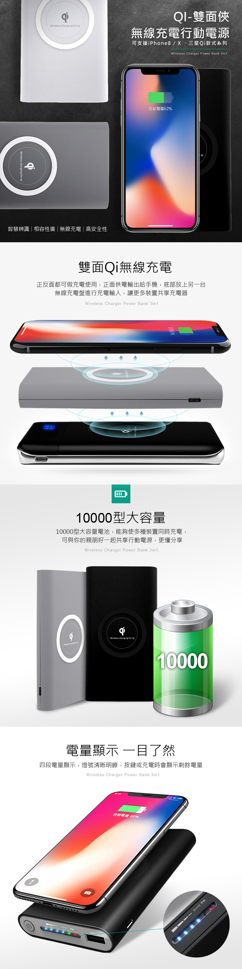 | QI-雙面俠 無線充電 行動電源-★ 符合Qi標準,支援多種手機 ★ 雙面充電,正面輸出,反面輸入 ★ 10000型大電池 ★ 單USB輸出孔,可支援兩台團購首家承諾24小時到貨!17Life給您又快 售價:459 我要購買 |